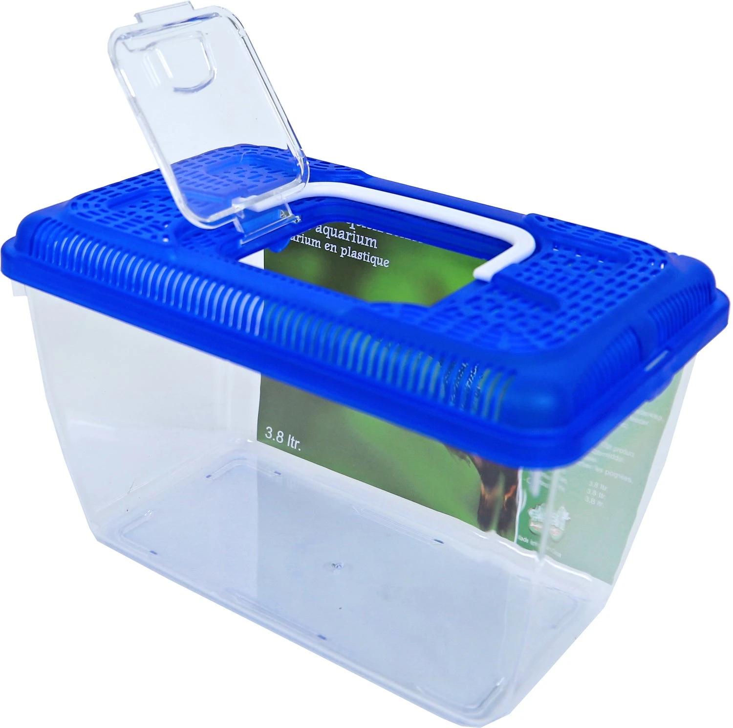 Dit aquarium van Boon is gemaakt van kunststof en heeft een blauwe afdekkap, waardoor de vissen er niet uit kunnen springen. De afdekkap heeft een handig transparant voederklepje. Verkrijgbaar in diverse maten.