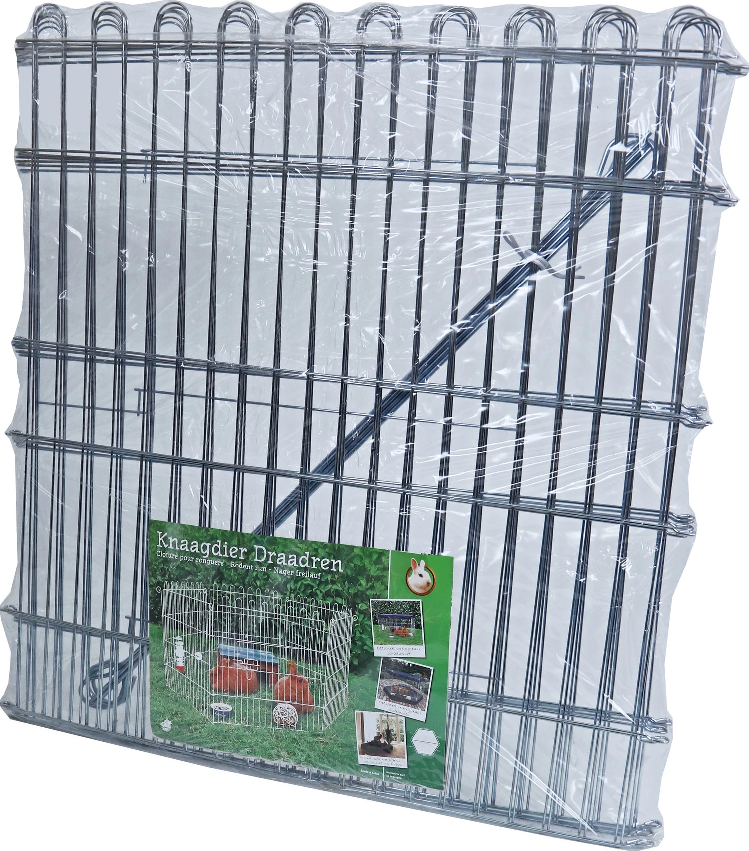 Laat je konijn regelmatig in de ren, zodat het dier voldoende bewegingsvrijheid heeft. Het konijn beschouwt de ren als een open vlakte en kan daardoor nerveus gedrag vertonen. Om het konijn op zijn gemak rond te laten lopen is het plaatsen van een huisje om te schuilen aan te bevelen. De ren bestaat uit 6 panelen, 1 paneel beschikt over een deur.