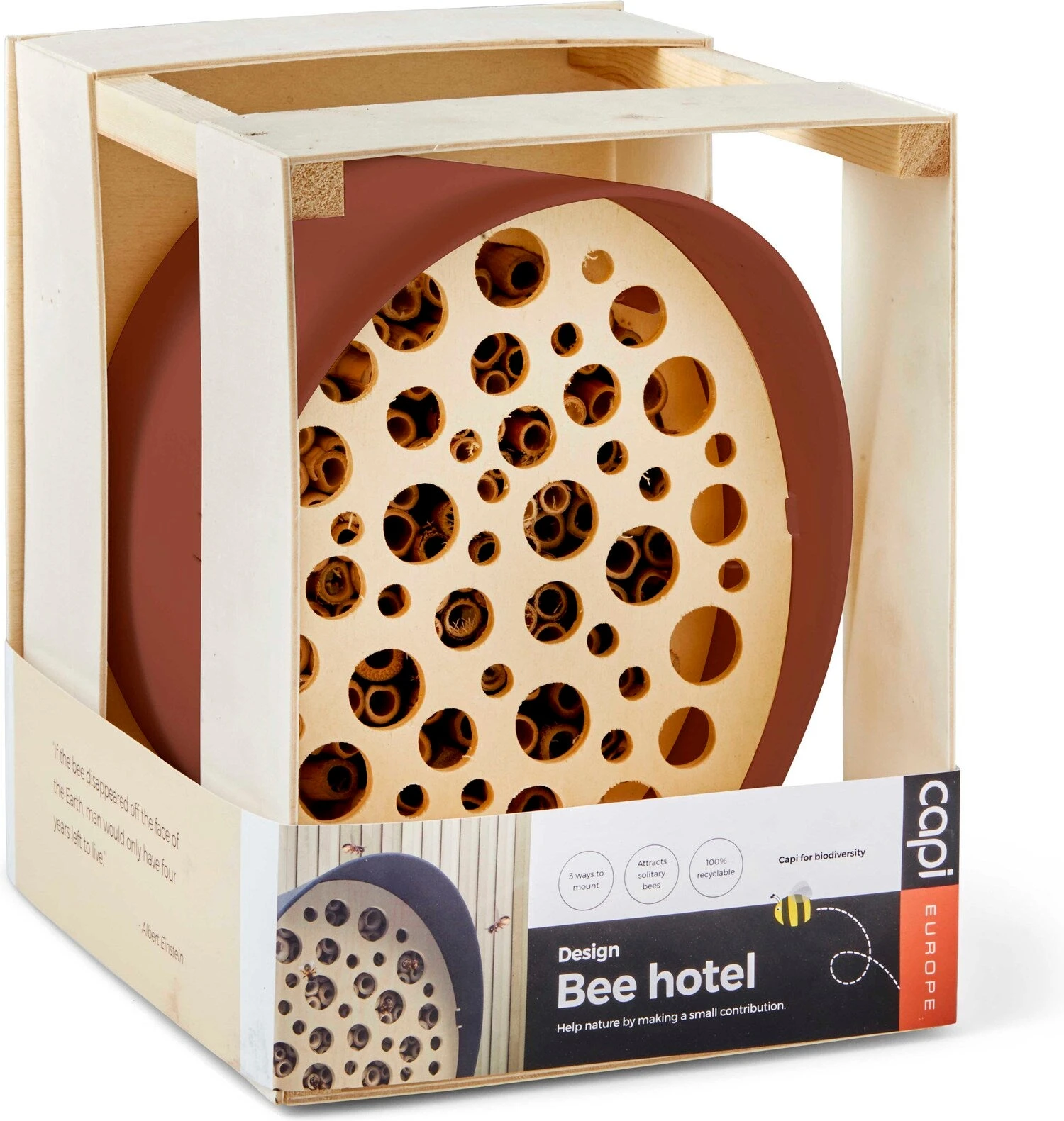Dit bijenhotel van Capi Europe is antraciet en een functioneel design product binnen de Capi biodiversiteitscollectie. Met het bijenhotel bescherm je de solitaire bij en draag je bij aan de voortplanting van deze bijen. Het bijenhotel is verkrijgbaar in verschillende kleuren.