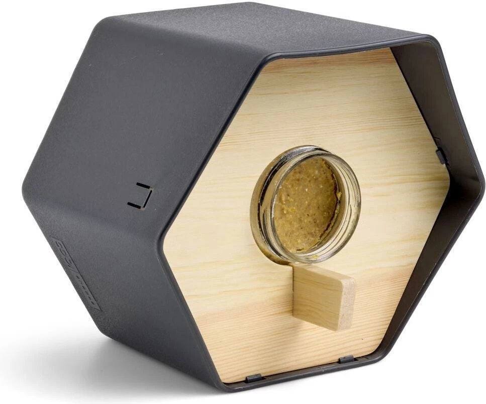 Vogels zijn gek op vogelpindakaas, en met dit voederhuis biedt je de pindakaas ook nog eens op stijlvolle wijze aan! Zeker tijdens de koude maanden, wanneer natuurlijke voeding minder aanwezig is, zullen de vogels je dankbaar zijn. Door zijn vorm is dit leuke pindakaashuisje eenvoudig te combineren met andere artikelen uit de Hive collectie.