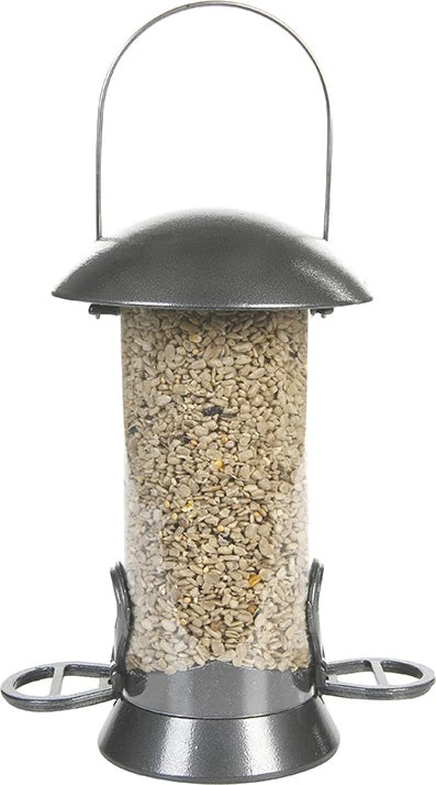 In deze robuuste zadensilo Adventurer klein blijft het voer langer vers en kun je voor langere tijd voer aanbieden. De ringen bij de opnamepoortjes zorgen ervoor dat de vogels in elke positie voeders kunnen opnemen.