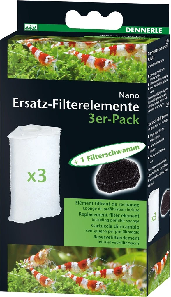Nano vervangend filterelement van Dennerle is geschikt voor de Nano hoekfilter en Nano hoekfilter XL. In voorraadverpakking met 3 stuks.