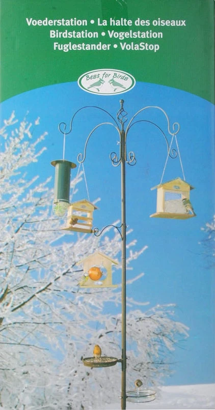 Alles in 1 voederstation met water- en badstation. Dit voederstation biedt de ruimte voor verschillende soorten eten, zo kunt u hier bijvoorbeeld vetbollen en fruit in kwijt.
