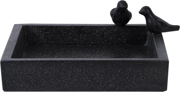 Deze vogelvoeder- en drinkschaal van Esschert Design is, wanneer er water in zit, ook een badgelegenheid voor tuinvogels. Plaats de schaal op een goed zichtbare plek. Ververs het water regelmatig en maak het bad dan schoon, ook geschikt om te vullen met strooivoer. De vogelvoeder- en drinkschaal is zwart, vierkant en gemaakt van graniet.