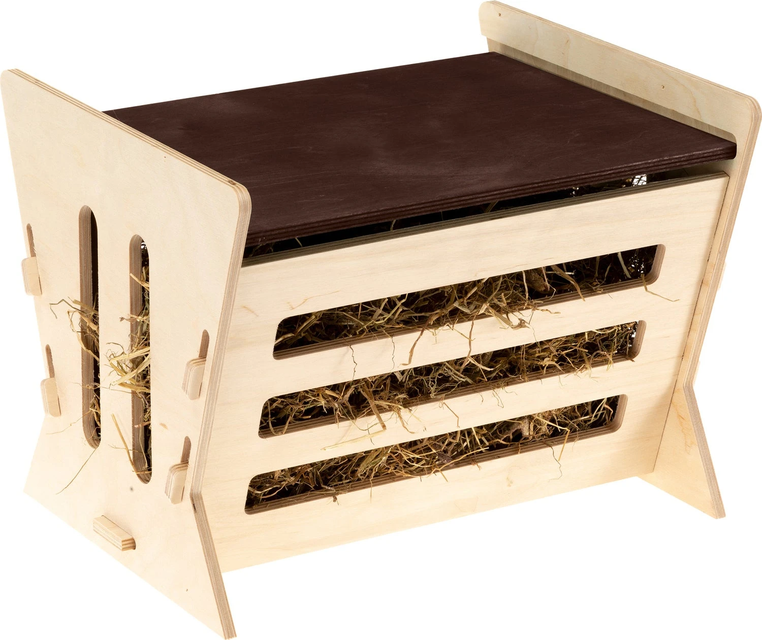 De hooiruif 1 van Ferplast is aan alle zijkanten toegankelijk voor jouw cavia of konijn. De bovenkant kan afgesloten worden met een schuifplaat. Doordat het hooi niet op de grond ligt blijft het langer vers. Deze hooiruif is gemaakt van hout en eenvoudig te monteren.