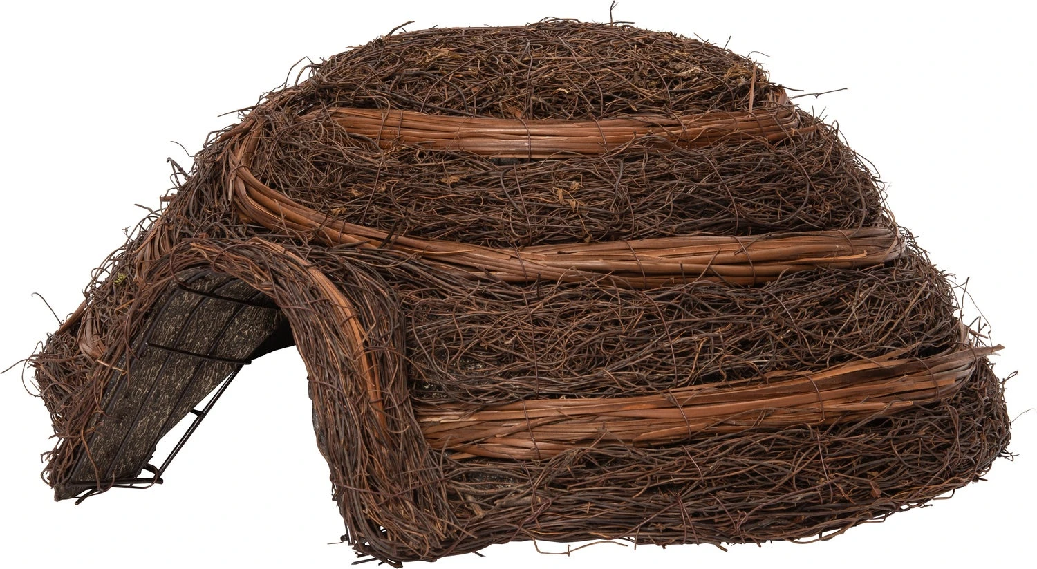 Dit mooie natuurlijke egelhuis is een veilige thuisbasis voor de egel. Het beschermt de egel tegen het tuingereedschap (maaien, vorken) maar ook tegen vossen en dassen. Het stevige stalen frame is afgewerkt met stevig rotan.