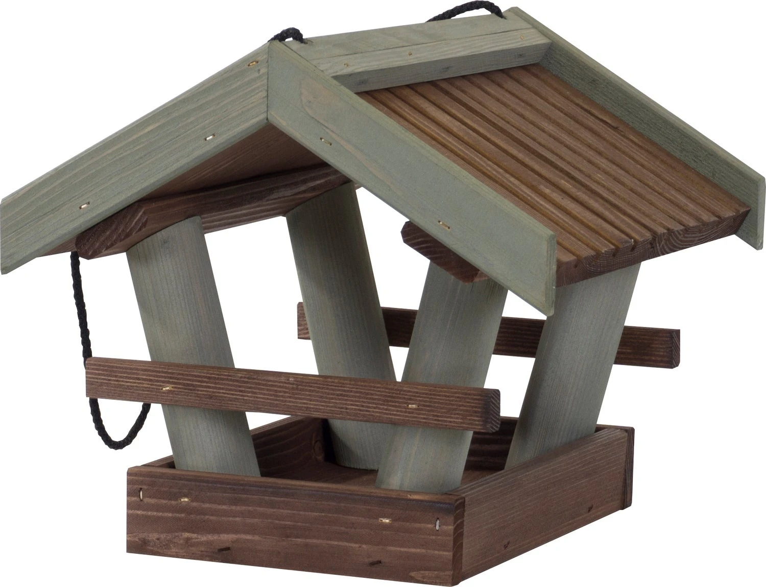 Dit hangende vogelvoederhuis van Intratuin is gemaakt van vurenhout dat is behandeld met een niet giftige houtbeits op waterbasis. Aan het dak zit een zwart koord bevestigd met een diameter van 0,5 cm. Met dit moderne vogelvoederhuis zorg je voor meer leven in de tuin of op het balkon.