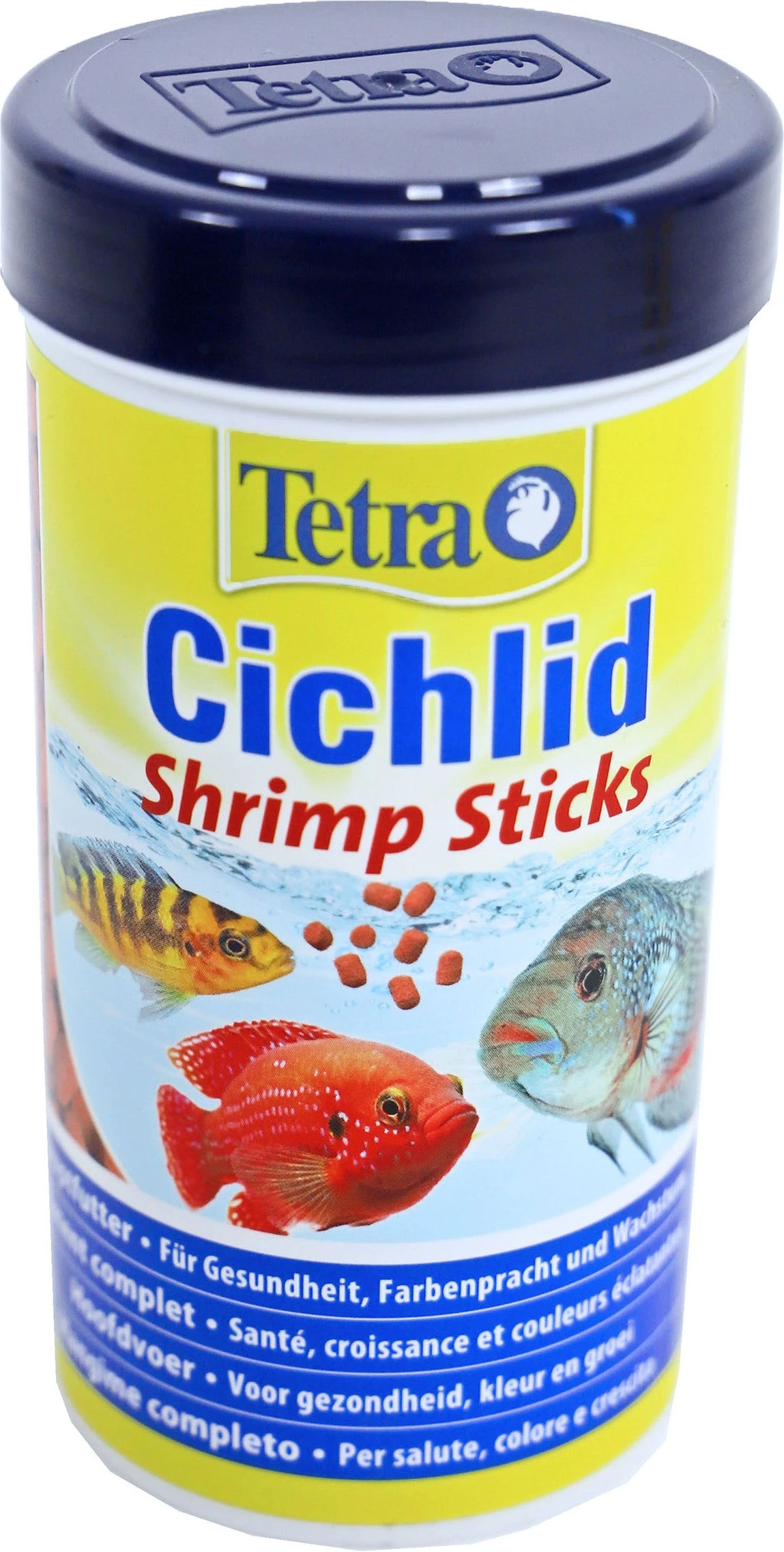 Visvoer Cichlid garnalensticks van Tetra is een evenwichtig en gezond volwaardig hoofdvoeder. Het bevat een groot aandeel gevriesdroogde garnalen, voor alle vleesetende cichliden. Dit voer bevordert het welzijn, de natuurlijke kleurenpracht en de groei, wordt uitstekend verteert door alle vleesetende siervissen.
