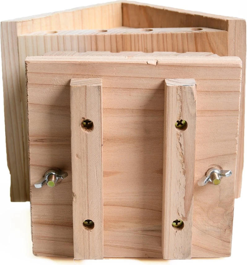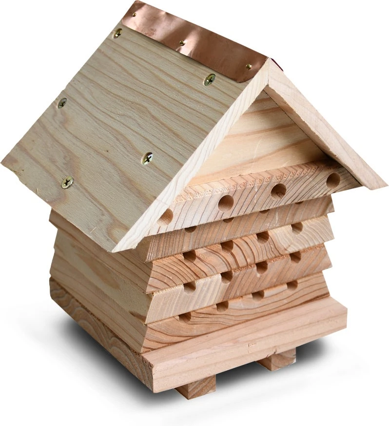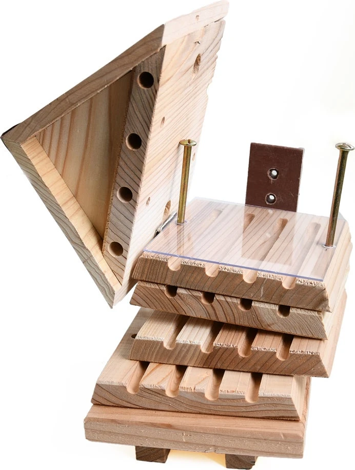Deze bijenkorf Flip-Top is stapelbaar en gemaakt van FSC hout. Het dak kan worden opengeklapt. Hierdoor is de binnenkant, waar de bijen hun nest hebben en waar de larven groeien, goed te bekijken en om schoon te maken. Let op! doe dit alleen in de herfst en de winter. Het is niet gevaarlijk voor kinderen en/of huisdieren omdat op deze korf alleen maar solitaire bijen afkomen.